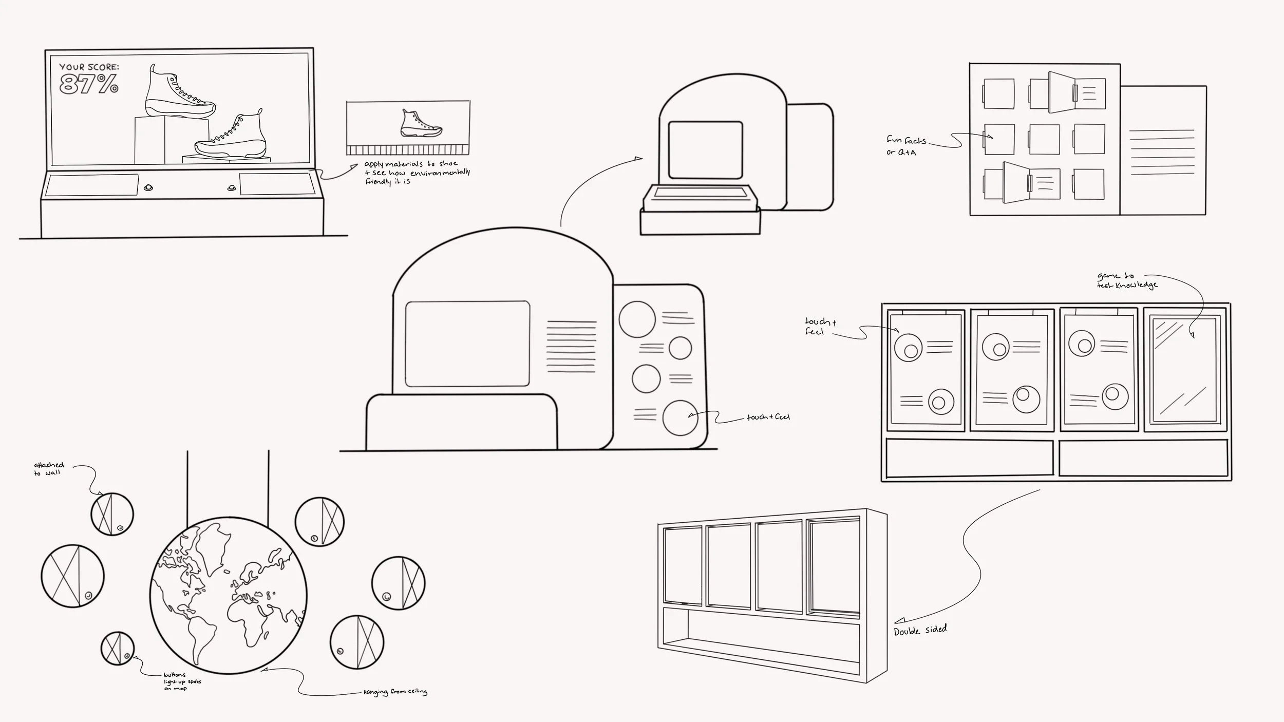 This exhibit will present several types of sustainable materials, while allowing the viewer to interact with the materials themselves. After reading and feeling the materials, the user can then test this knowledge with a game, where they select materials for a product and find out how environmentally friendly their choices are. Finally, the viewer can read more about what they can do to help create a more sustainable future.