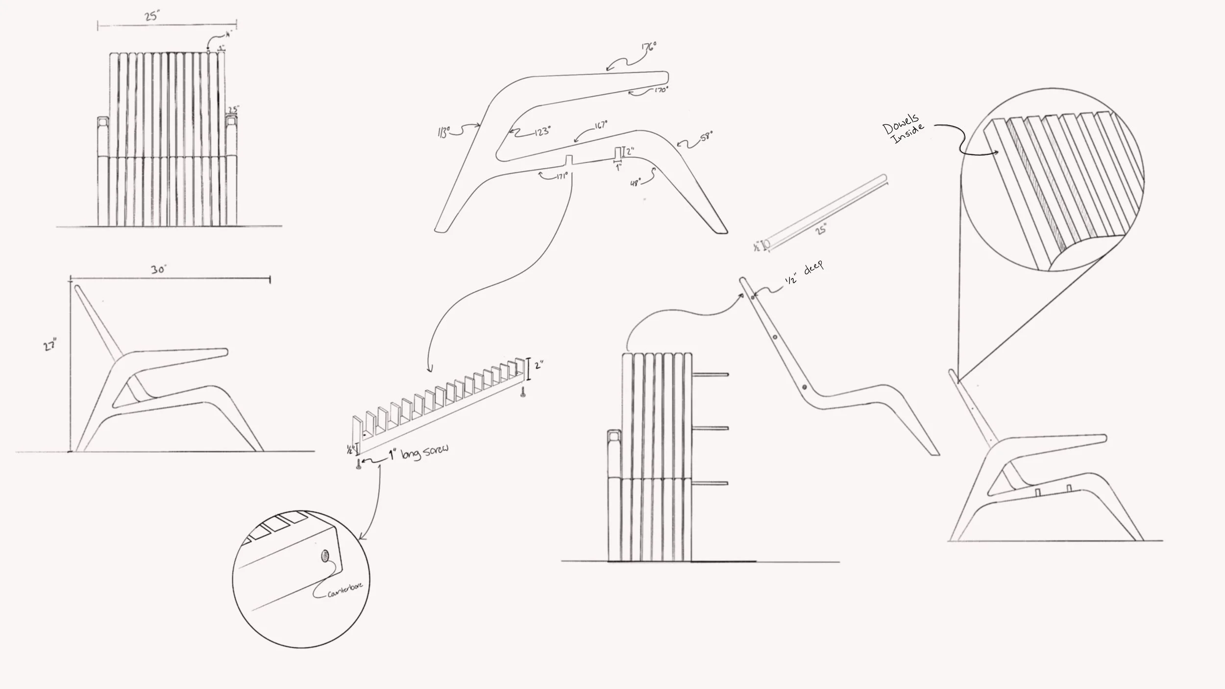 Design a wooden chair that can be flat-packed for shipping and easily assembled by the user